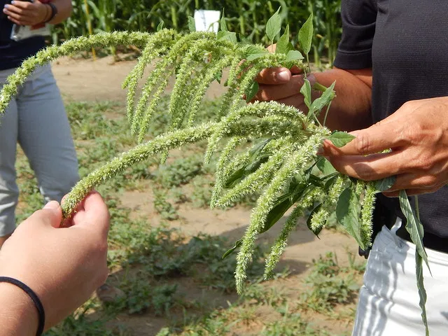 Palmer amaranth (commonly known as pigweed) is an aggressive weed that is resistant to glyphosate, can grow up to 1 inch a day, and produces a half a million seeds per plant. Because of that, it can spread quickly in fields and hedgerows, outcompeting field crops.